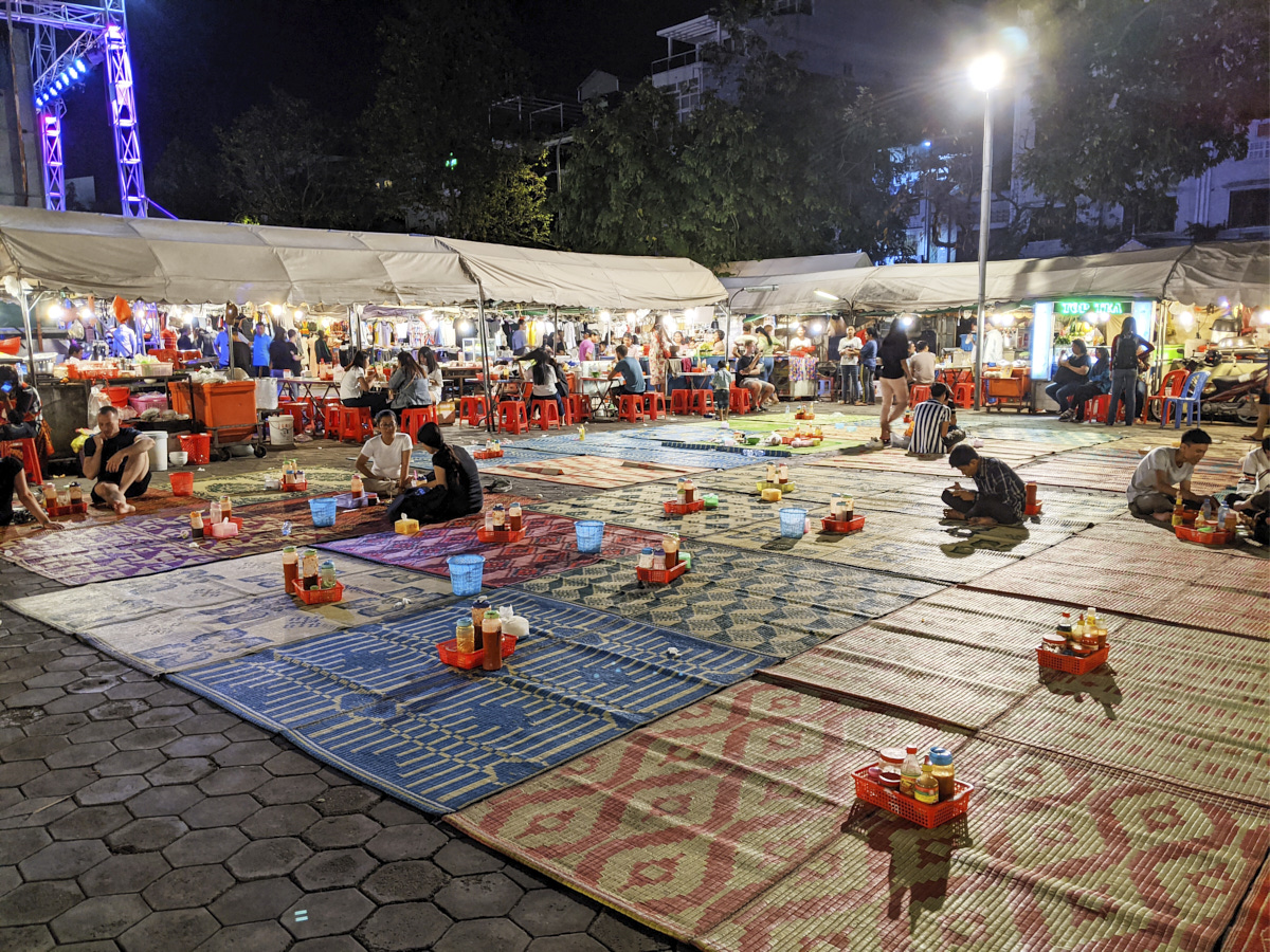 And, to end on a more pleasant note, a couple more pictures of a Cambodian village, and the local night market set up with “picnic areas” for people to enjoy their food. More cruising soon as the Vietnam post will be coming soon.