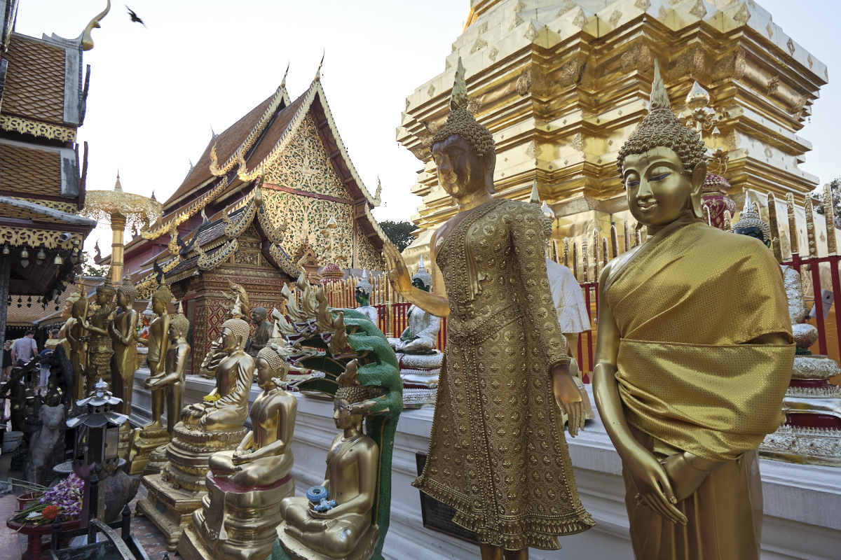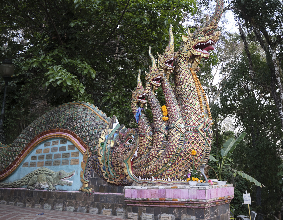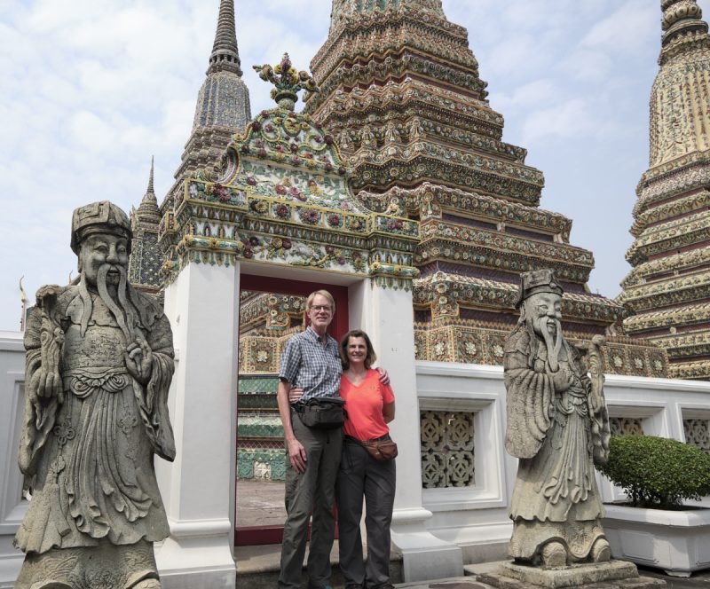 Thailand is colorful, exotic country with ornate temples and carvings, bright clothing, and deeply religious, kind people. Tim and I were fortunate to attend a guided tour of Northern Thailand through G Adventures. Since we know we don’t do well in hot weather, an organized tour made sense, but we stayed a couple of days in Bangkok afterwards to do some more sightseeing.We traveled in a group of 16 or so people, mostly couples, a mix of nationalities with quite a few Canadians. We felt right at home for the two weeks with our fellow northern neighbors and enjoyed many laughs. All of us met in Bangkok in early February at a modern hotel where our itinerary was discussed and last minute details sorted out for us.