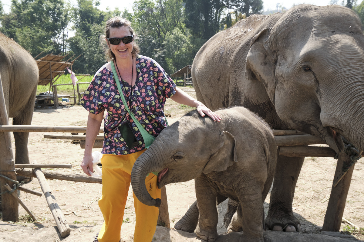 On one of our free days, we stopped by an elephant sanctuary. These have traditionally had a bad name, due to mistreatment of the elephants. But people are more aware now, and the centers have adjusted to be more of a sanctuary than a sideshow. The elephants are not ridden, and don’t perform “tricks”. Instead, the guests learn about the elephants, feed and bathe them. In return, the tourists provide the funds to care for and feed the elephants. We got to interact with about half a dozen elephants, including a 3 month old baby.