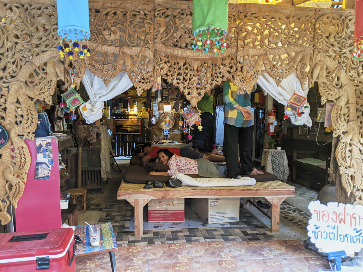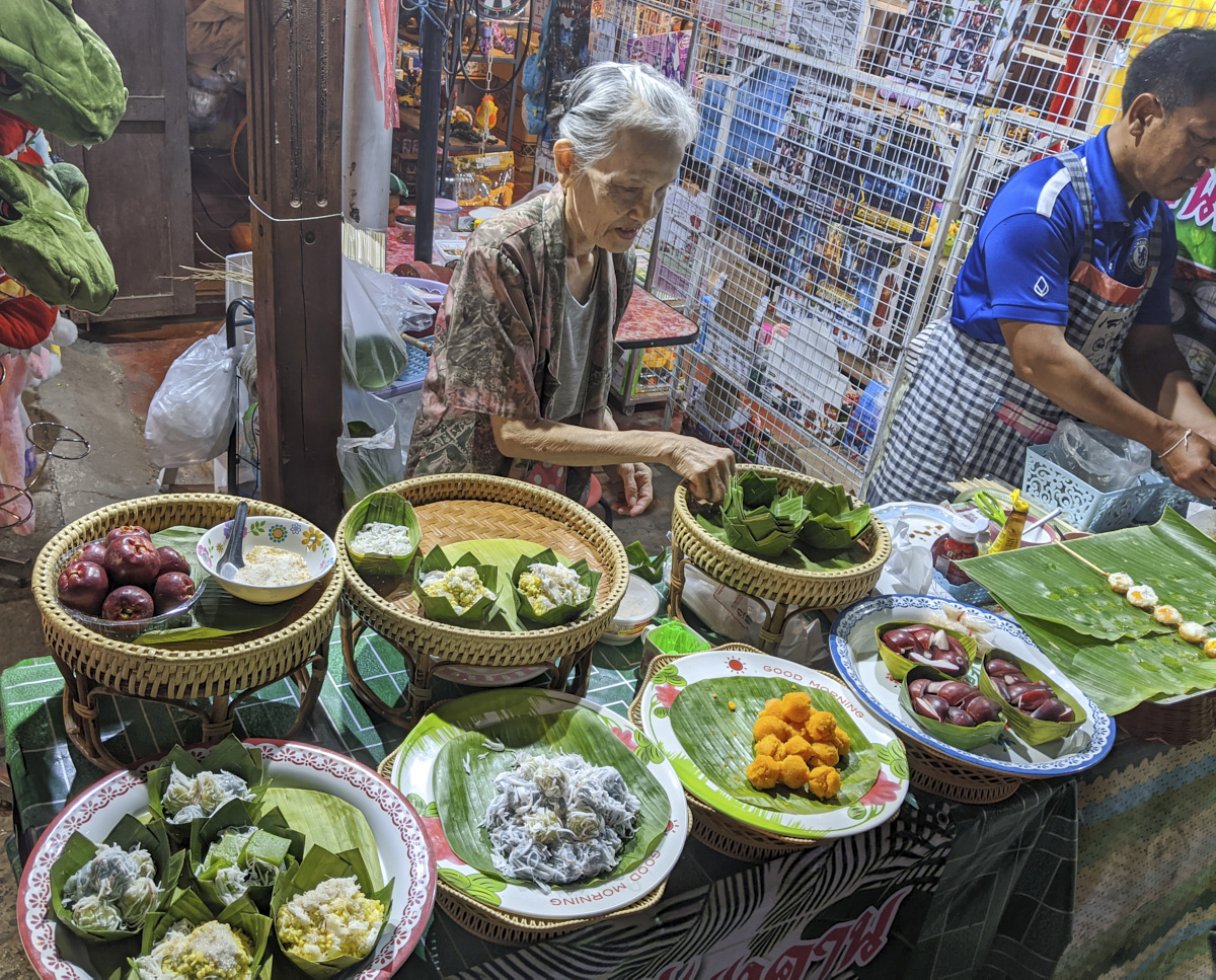 The food in Thailand was wonderful. Deb had some challenges with the heat of the food, but the flavors were amazing. And the street food was incredible. In Thailand, it’s cheaper to buy prepared food on the street than for us to buy the ingredients. So eating out (or on the run) is very common. The picture below is from a stay we had in a quiet town called Chiang Khan. It gets few Western tourists, and was fun to wander.