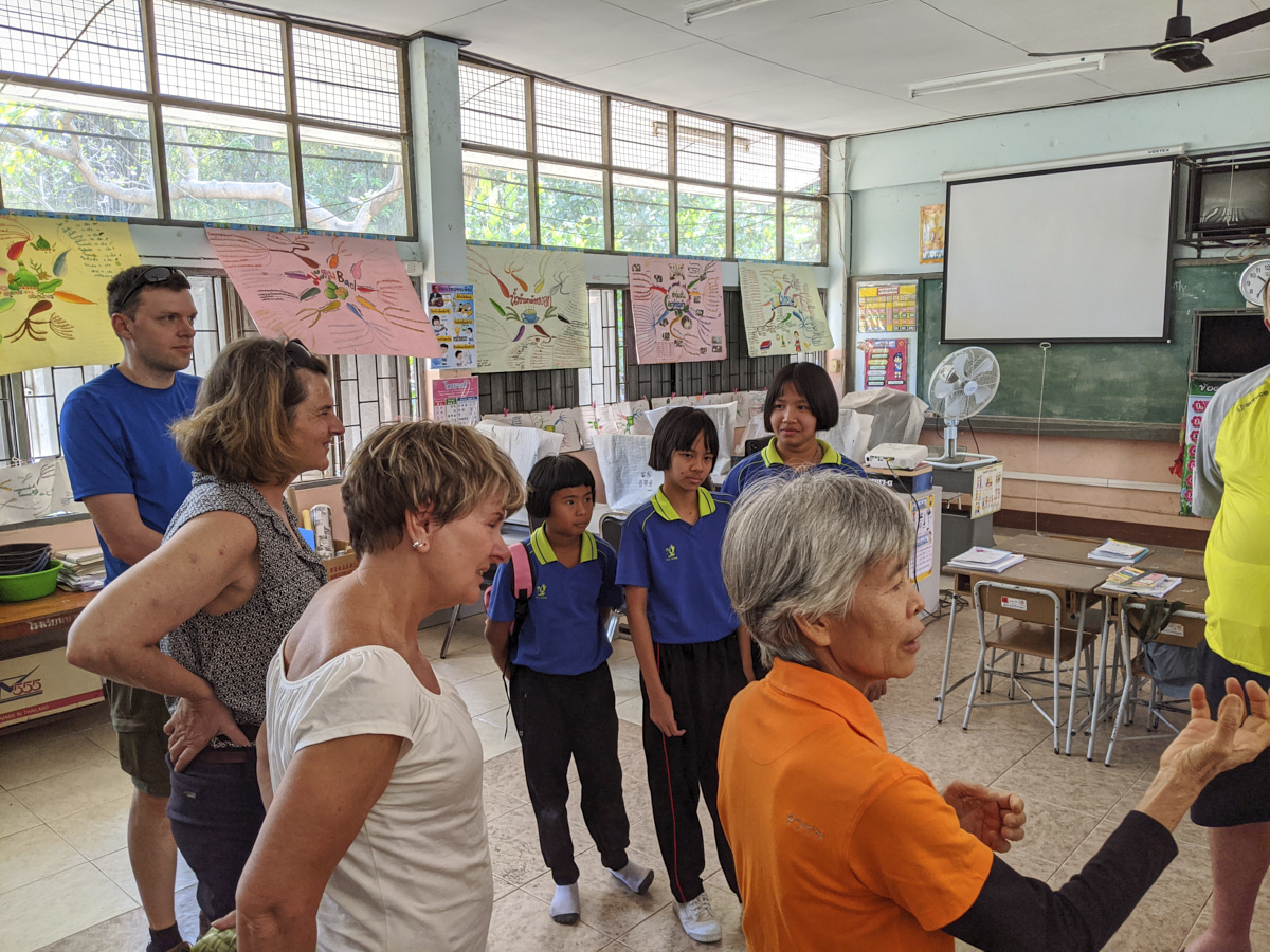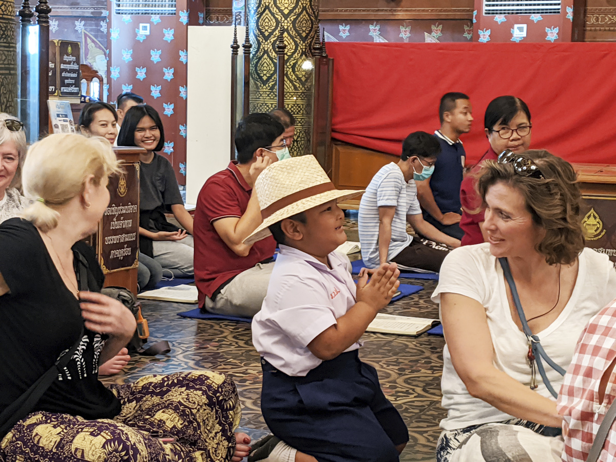 This Thai boy was fascinated by our group, and spent his time explaining to two of our ladies everything that was going on – in Thai of course. He also borrowed their hat to try on.