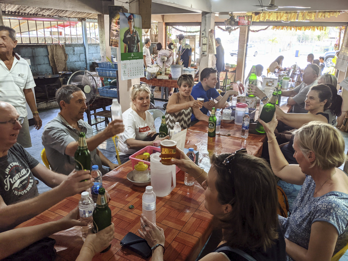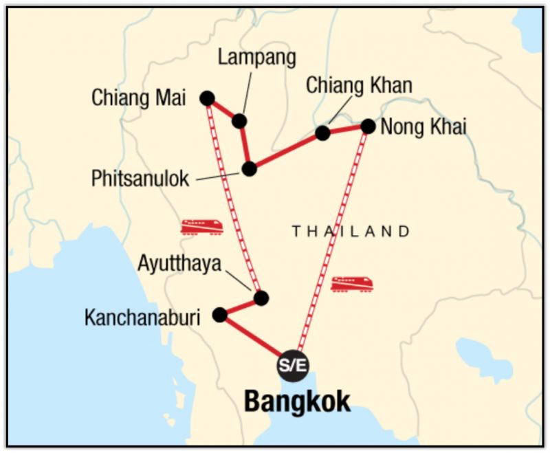 Human interest story from Deb: “Our tour guide was a delightfully “sassy” one! She had a wonderful sense of humor and did everything she could to make people feel comfortable. Our first night on the train was interesting one. We had a gruff woman of around 65 years of age who came for our food order. As we were still learning our pleases and thank you’s in Thai, we had a hard time following what she was trying to convey. We were supposed to pick something off the menu for the evening meal and morning coffee, but she would show the menu and give you about 30 seconds before demanding an answer. One of the members of our tour got very intimidated by her gruff manor and another just pointed to the menu and said YES without understanding as she did NOT want to be yelled at. Ha! We all had such a good laugh. But the laugh was on us, we all had ordered a beer for the evening only to receive a non-alchoholic watered down brew. I guess having alcohol on the train is not okay with the Buddhist religion. Our sweet 65 year old gal was probably having a good snicker!”